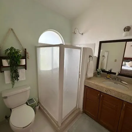 A vendégek a kertre néző teraszon pihenhetnek. A Playa del Carmen városi szállás fürdőszobái pezsgőfürdőt is magukba foglalnak.